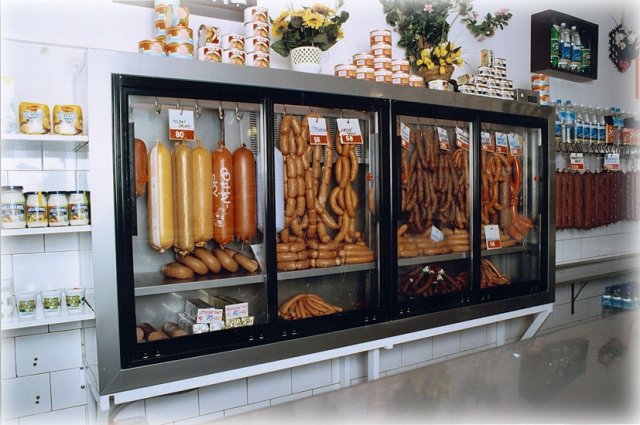 - je určena k umístění na konzolu nebo stojan. Vitríny s prosklenými dveřmi jsou vhodné pro prodej a prezentaci masa a masných výrobků.